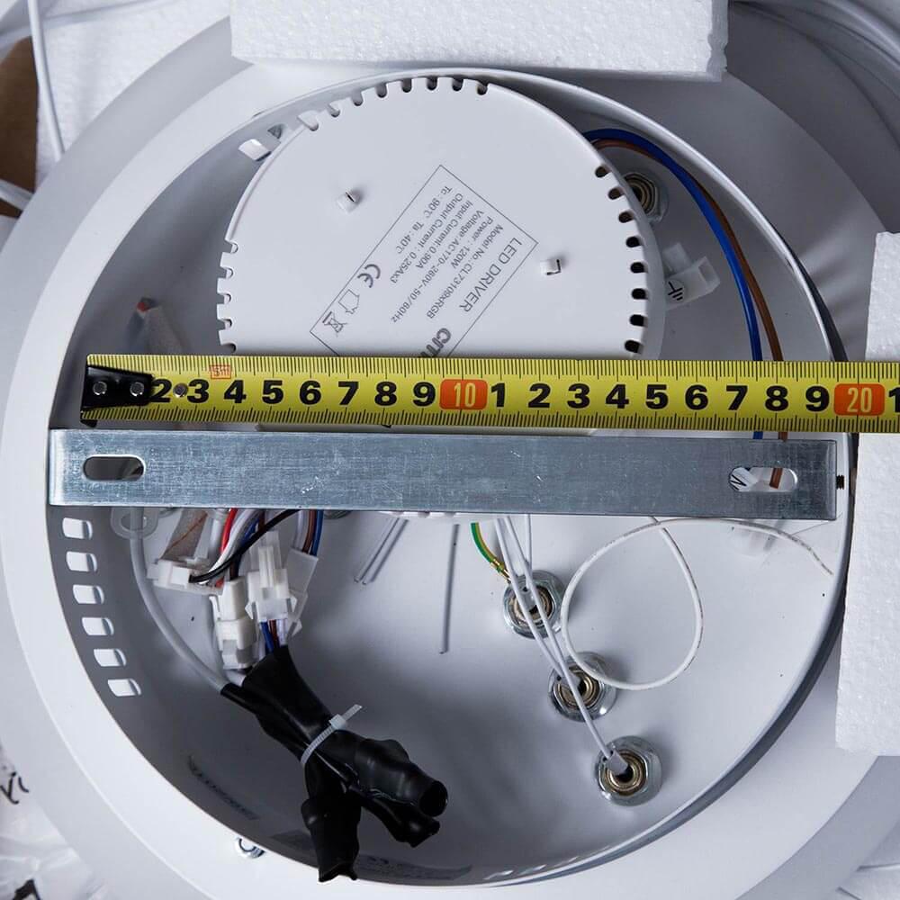 Для светильника необходима светодиодных ламп 118 W. Габариты изделия: высота – 400 мм, диаметр – 800 мм.