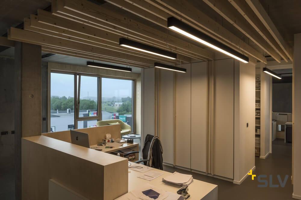 Подвесной светодиодный светильник SLV Glenos 1001409 от Немецкого бренда SLV из коллекции Glenos предназначен для установки на потолок в офисе в современном стиле. Cветильник в форме прямоугольника с алюмииневой арматурой черного цвета и черного цвета плафонами из пластика предназначен для освещения м2.
