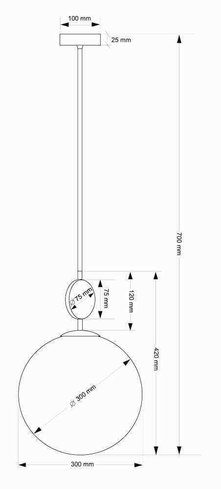 Для светильника необходима 1 лампа накаливания 40 W. Габариты изделия: высота – 700 мм, диаметр – 300 мм.