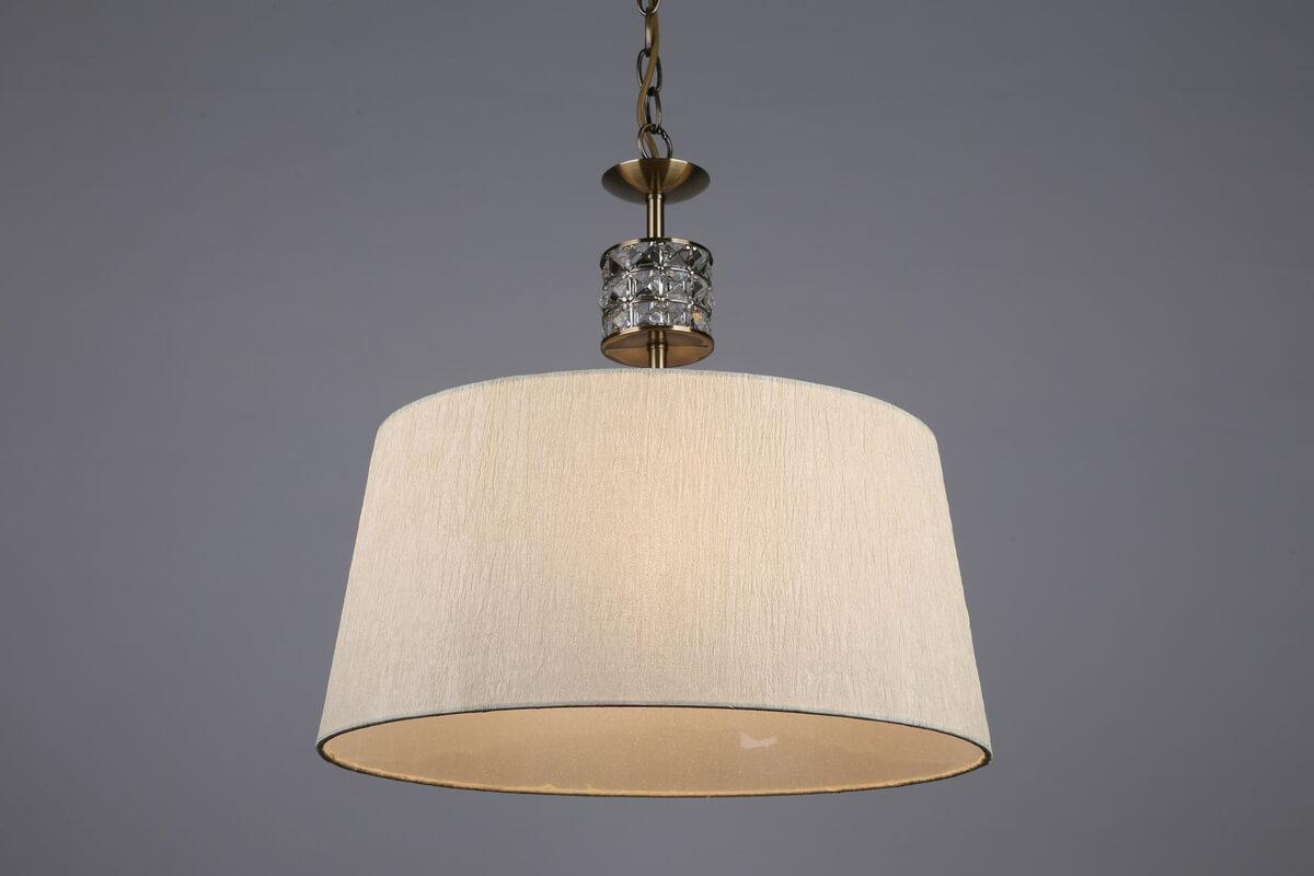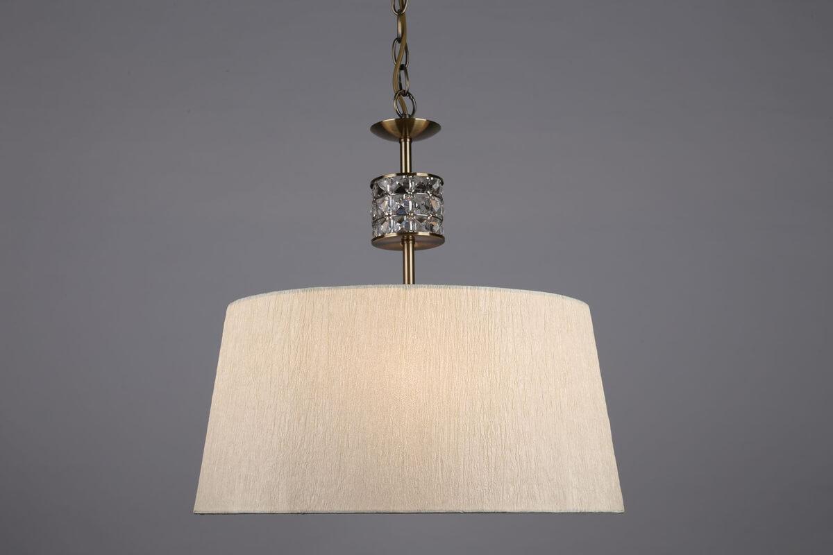 Подвесной светильник Omnilux OML-61406-01 от Китайского бренда Omnilux из коллекции 614 предназначен для установки на потолок в кафе и ресторанах в классиком стиле. Cветильник в форме конуса с металлической арматурой бронзового цвета и белого цвета плафонами из ткани предназначен для освещения 3,3 м2.