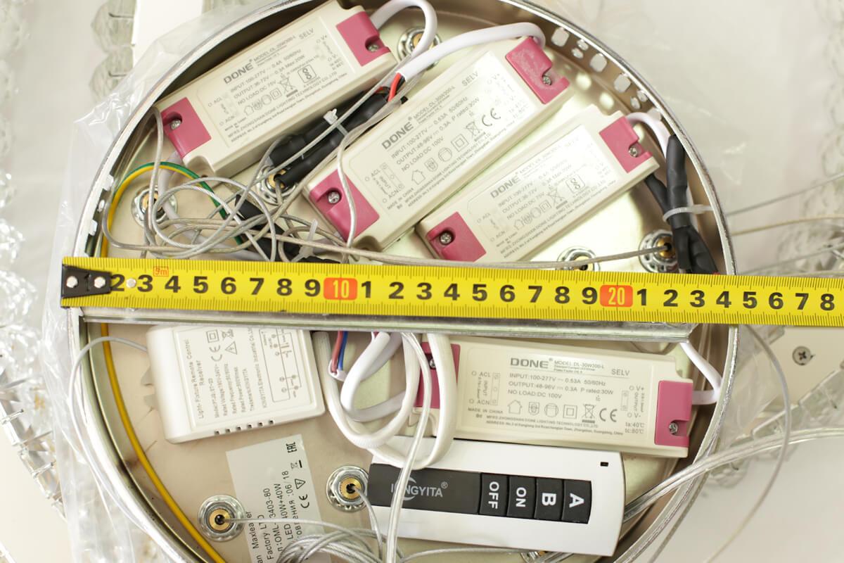 Для светильника необходима светодиодных ламп 80 W. Габариты изделия: высота – 950 мм, диаметр – 600 мм.