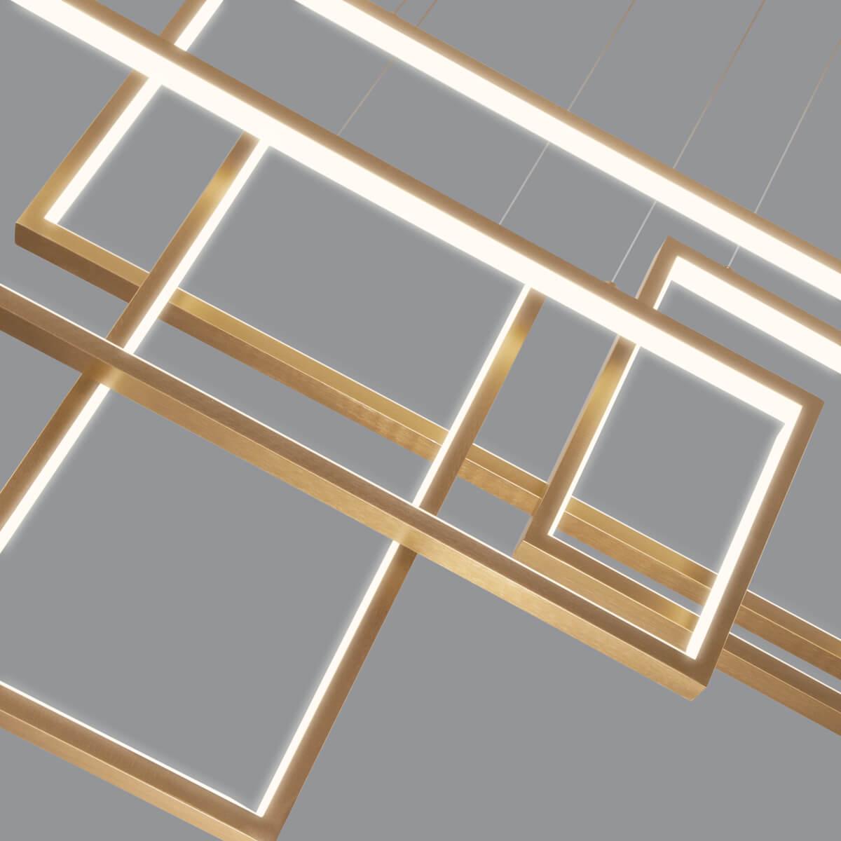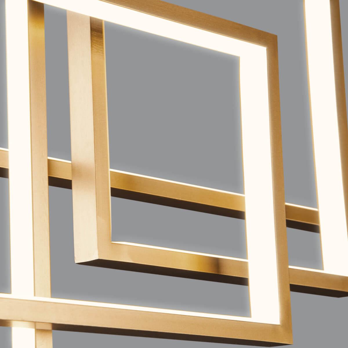 Подвесной светильник Eurosvet 90178/5 золото от Российского бренда Eurosvet из коллекции Direct предназначен для установки на потолок в больших залах в дизайнерском стиле. Cветильник в форме прямоугольника с металлической арматурой залотого цвета и залотого цвета плафонами из металла предназначен для освещения 29 м2.