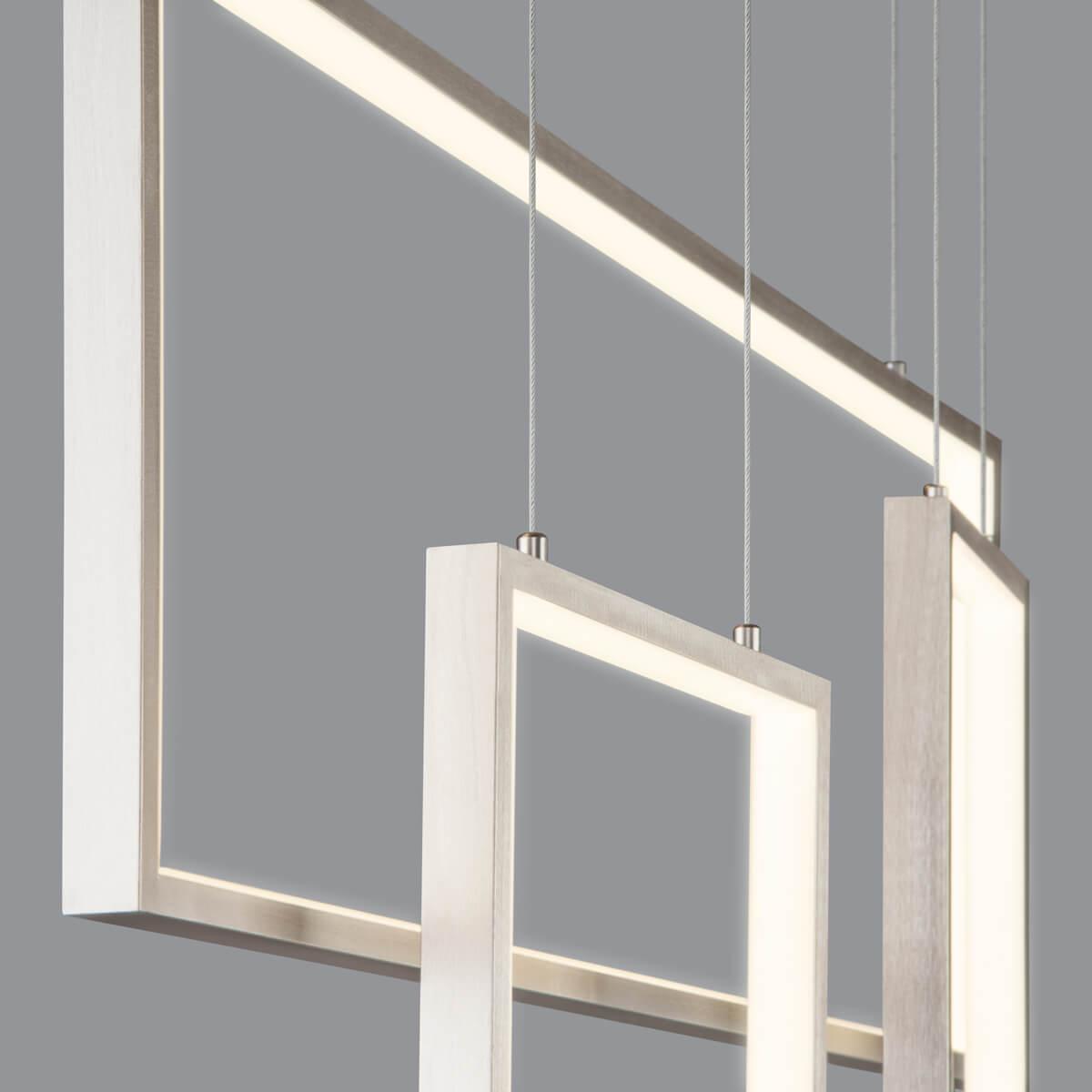 Подвесной светодиодный светильник Eurosvet Smart Direct 90278/3 сатин-никель от Российского бренда Eurosvet из коллекции Smart Direct предназначен для установки на потолок в гостиной в хай-тек стиле. Cветильник в форме прямоугольника с металлической арматурой цвета никель и цвета никель плафонами из металла предназначен для освещения 18 м2.