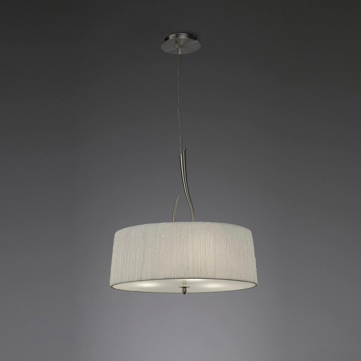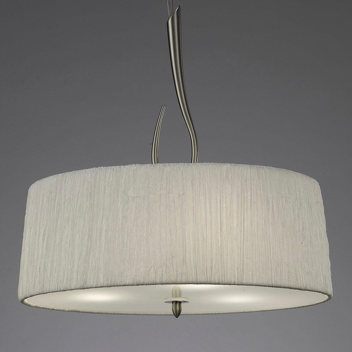 Подвесной светильник Mantra Lua 3704 от Испанского бренда Mantra из коллекции Lua предназначен для установки на потолок в спальни в дизайнерском стиле. Cветильник в форме цилиндра с металлической арматурой цвет хрома и белого цвета плафонами из ткани предназначен для освещения м2.