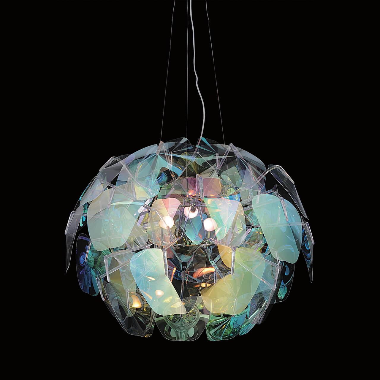 Подвесной светильник Artpole Mondstein 001111 от Китайского бренда Artpole из коллекции Mondstein предназначен для установки на потолок в гостиной в ретро стиле. Cветильник в форме Флористика с металлической арматурой цвет хрома и разноцветного цвета плафонами из пластика предназначен для освещения 10,0 м2.