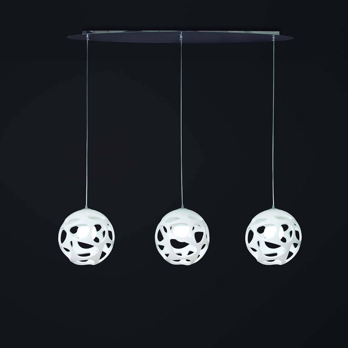 Подвесной светильник Mantra Organica 5145 от Испанского бренда Mantra из коллекции Organica предназначен для установки на потолок в кухне в дизайнерском стиле. Cветильник в форме круга с металлической арматурой цвет хрома и белого цвета плафонами из пластика предназначен для освещения м2.