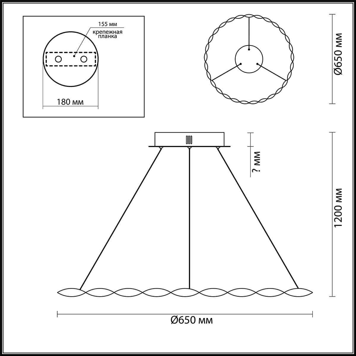 Для светильника необходима светодиодных ламп 43 W. Габариты изделия: высота – 1100 мм, диаметр – мм.