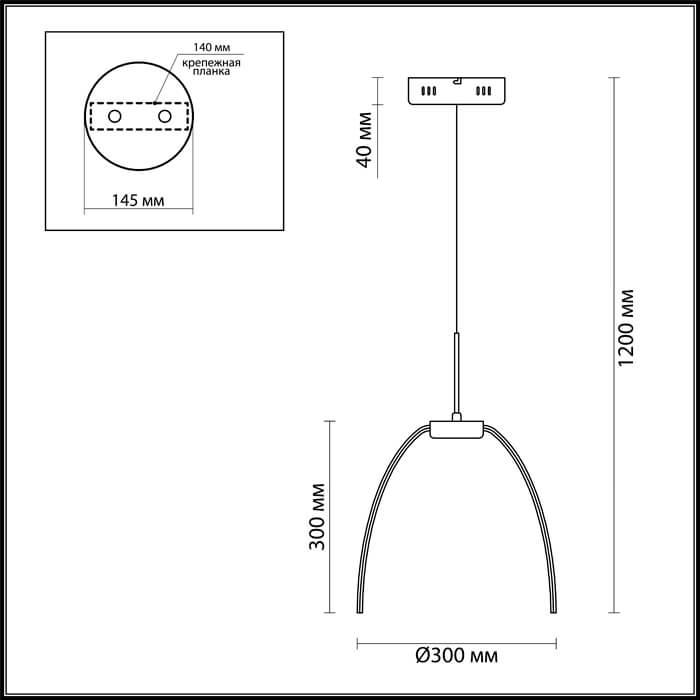 Для светильника необходима светодиодных ламп 72 W. Габариты изделия: высота – 300 мм, диаметр – 300 мм.