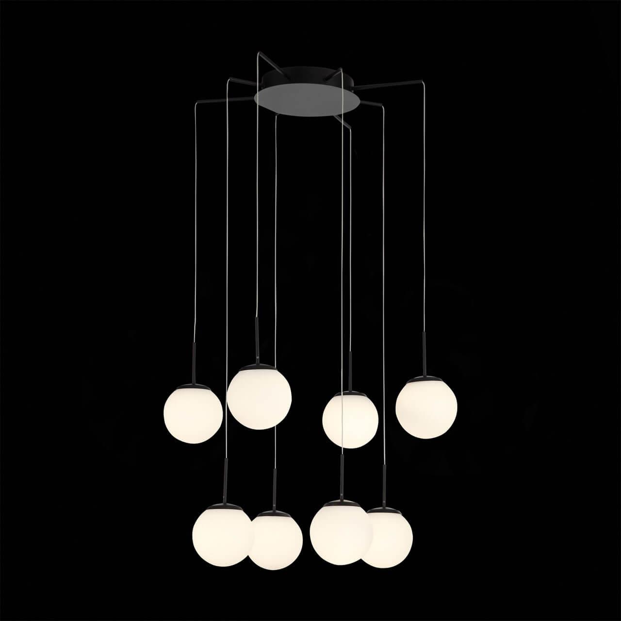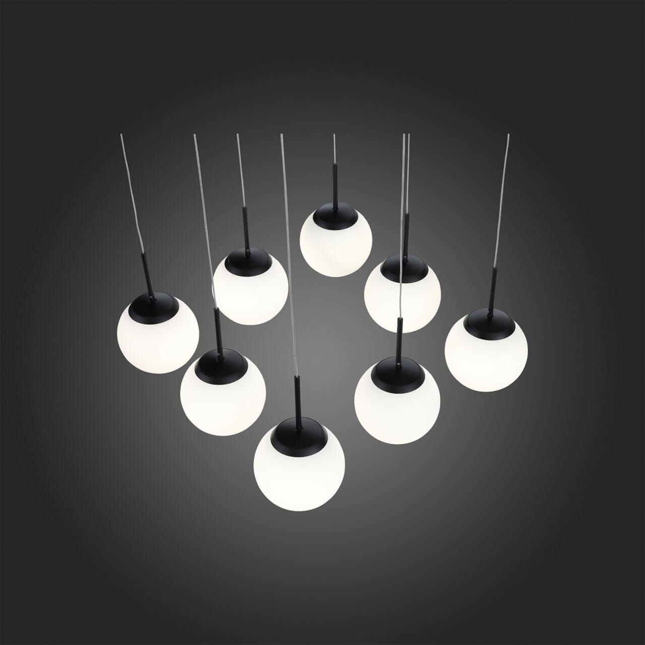 Подвесной светодиодный светильник ST Luce SL395.403.08 от Итальянского бренда ST Luce из коллекции Donolo предназначен для установки на потолок в гостиной в скандинавском стиле. Cветильник в форме круга с металлической арматурой черного цвета и белого цвета плафонами из стекла предназначен для освещения 23 м2.