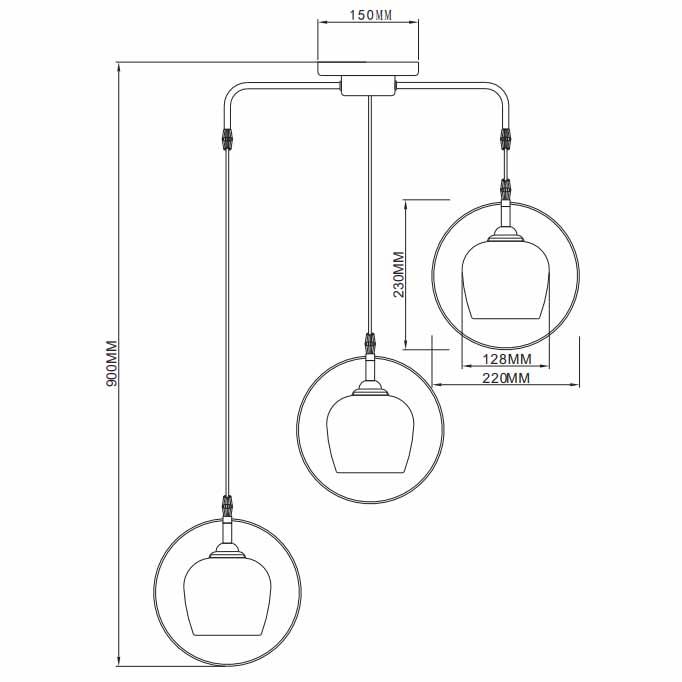 Для светильника необходима 3 лампы накаливания 40 W. Габариты изделия: высота – 900 мм, диаметр – мм.