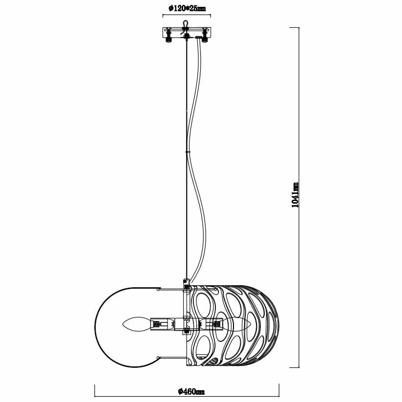 Для светильника необходима 4 лампы накаливания 40 W. Габариты изделия: высота – 1041 мм, диаметр – 460 мм.
