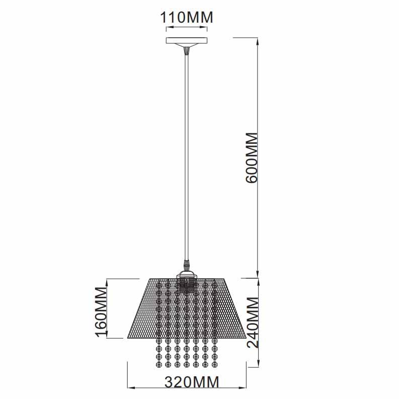 Для светильника необходима 1 лампа накаливания 40 W. Габариты изделия: высота – 920 мм, диаметр – 320 мм.