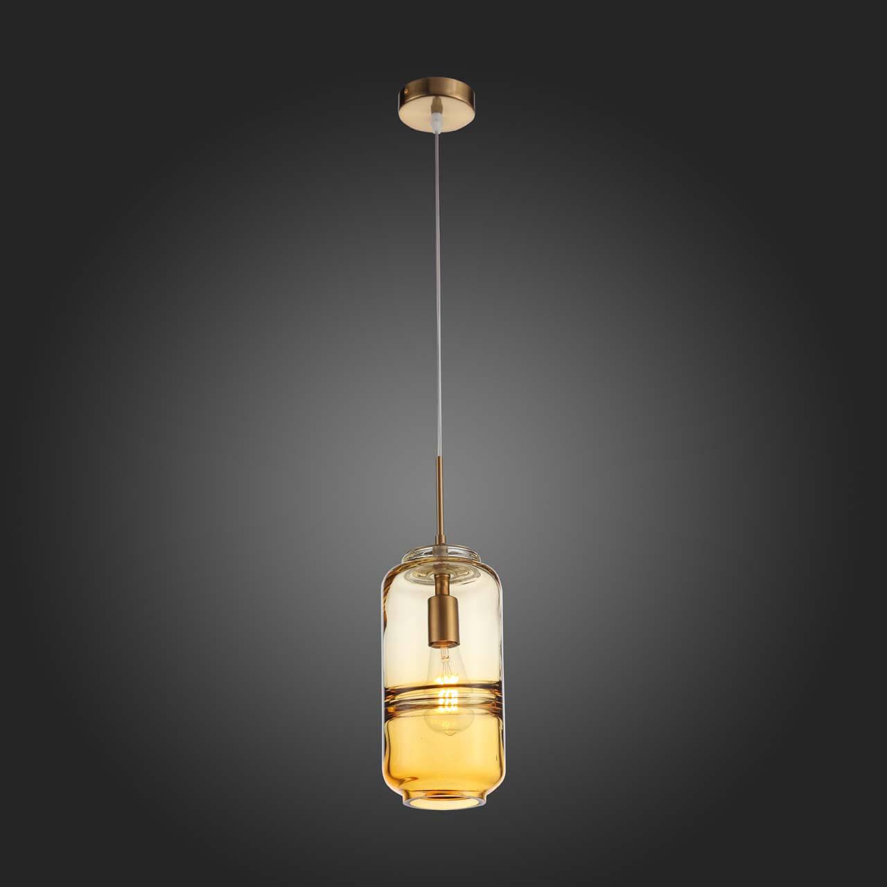 Подвесной светильник ST Luce Clusone SL1132.143.01 от Итальянского бренда ST Luce из коллекции Clusone предназначен для установки на потолок в кухне в современном стиле. Cветильник в форме цилиндра с металлической арматурой бронзового цвета и янтарного цвета плафонами из стекла предназначен для освещения 3 м2.