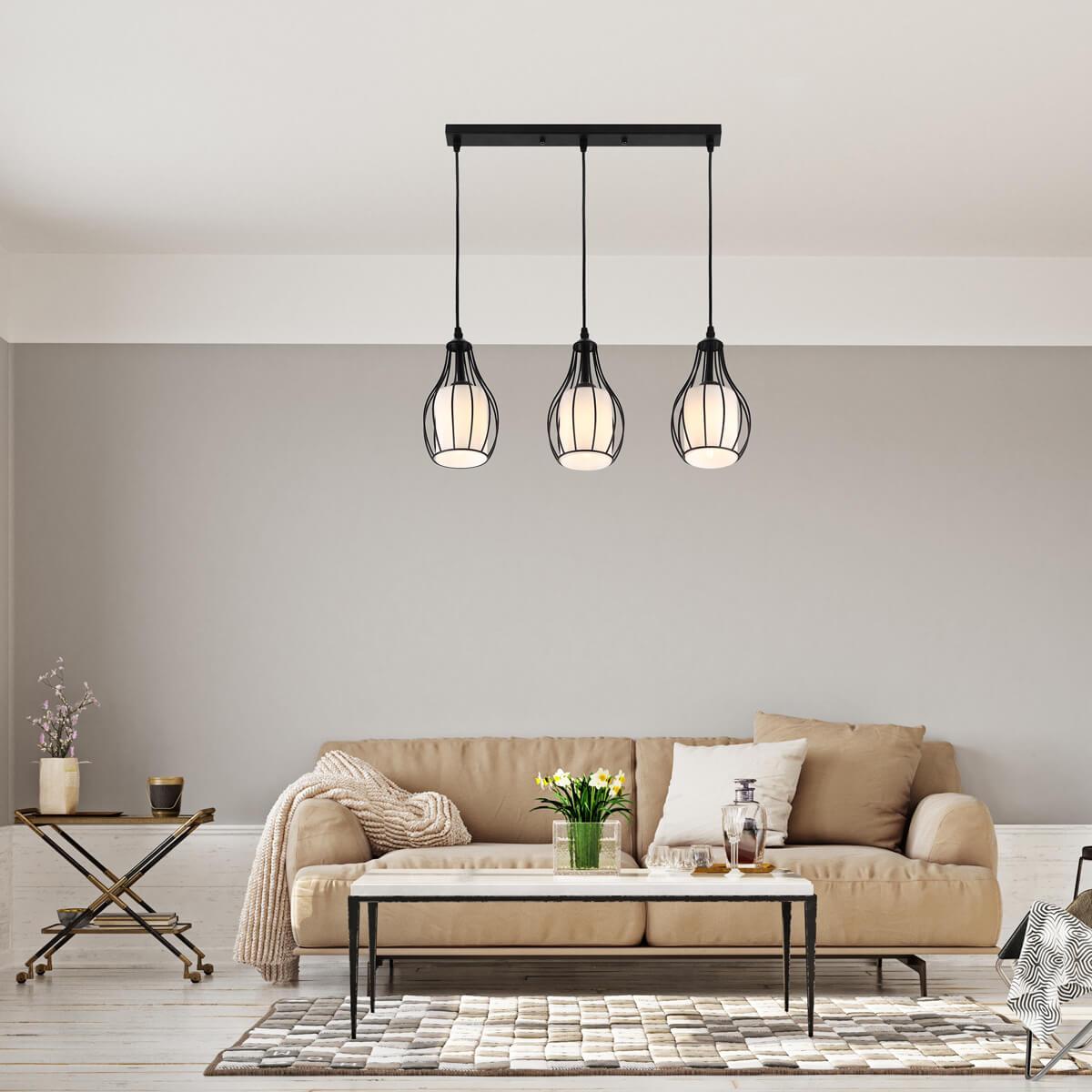Подвесной светильник Rivoli Viola 5042-203 Б0044359 от Итальянского бренда Rivoli из коллекции Viola предназначен для установки на потолок в кухне в лофт стиле. Cветильник в форме овала с металлической арматурой черного цвета и белого цвета плафонами из стекла предназначен для освещения 10 м2.