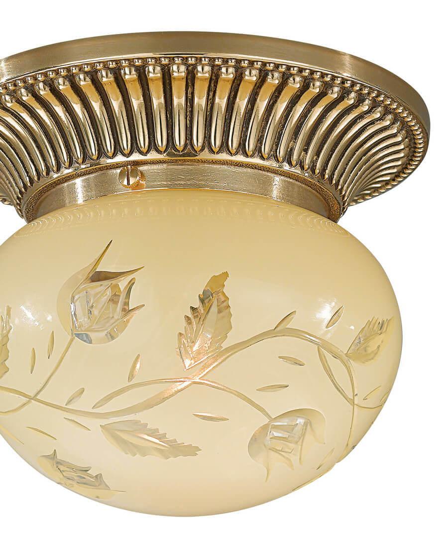 Потолочный светильник Reccagni Angelo PL 7802/1 от Итальянского бренда Reccagni Angelo из коллекции rosa 782 предназначен для установки на потолок в прихожей в классиком стиле. Cветильник в форме круга с латунной арматурой залотого цвета и светло-желтого цвета плафонами из стекла предназначен для освещения 3 м2.