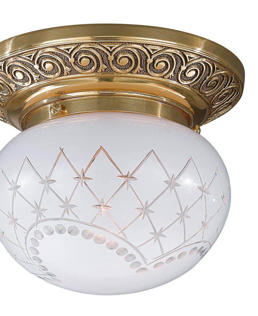 Потолочный светильник Reccagni Angelo PL 7840/1 от Итальянского бренда Reccagni Angelo из коллекции rosa 780 предназначен для установки на потолок в прихожей в стиле модерн. Cветильник в форме круга с латунной арматурой залотого цвета и белого цвета плафонами из стекла предназначен для освещения 3 м2.