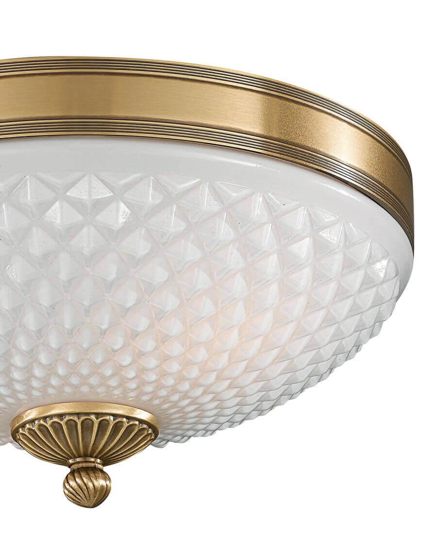 Потолочный светильник Reccagni Angelo PL 8400/2 от Итальянского бренда Reccagni Angelo из коллекции rosa 8400 предназначен для установки на потолок в кухне в классиком стиле. Cветильник в форме круга с латунной арматурой цвета античной бронзы и белого цвета плафонами из стекла предназначен для освещения 6 м2.