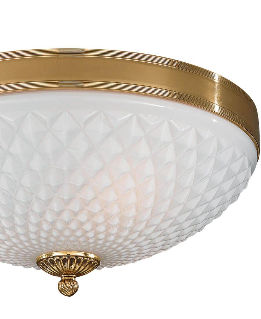 Потолочный светильник Reccagni Angelo PL 8500/3 от Итальянского бренда Reccagni Angelo из коллекции rosa 8500 предназначен для установки на потолок в кухне в классиком стиле. Cветильник в форме круга с латунной арматурой залотого цвета и белого цвета плафонами из стекла предназначен для освещения 9 м2.