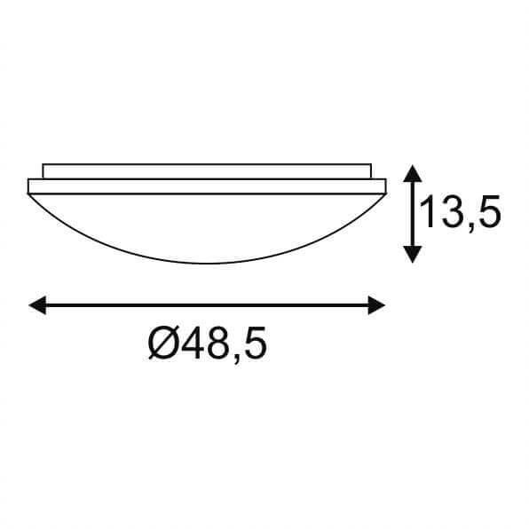 Для светильника необходима светодиодных ламп 46 W. Габариты изделия: высота – 135 мм, диаметр – 485 мм.