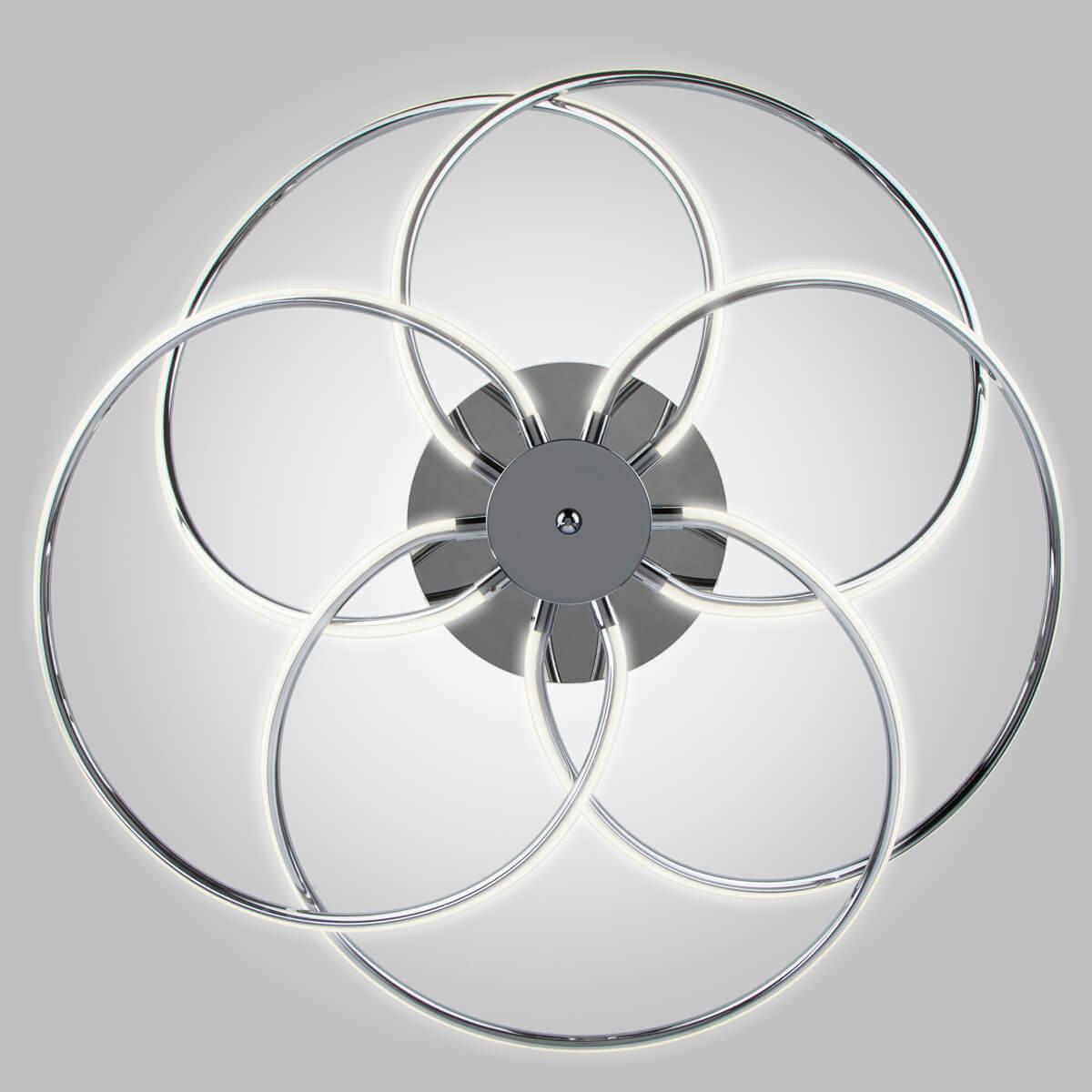 Потолочный светильник Eurosvet 90039/5 хром от Российского бренда Eurosvet из коллекции Infinity предназначен для установки на потолок в гостиной в хай-тек стиле. Cветильник в форме с металлической арматурой цвет хрома и белого цвета плафонами из пластика предназначен для освещения 30 м2.