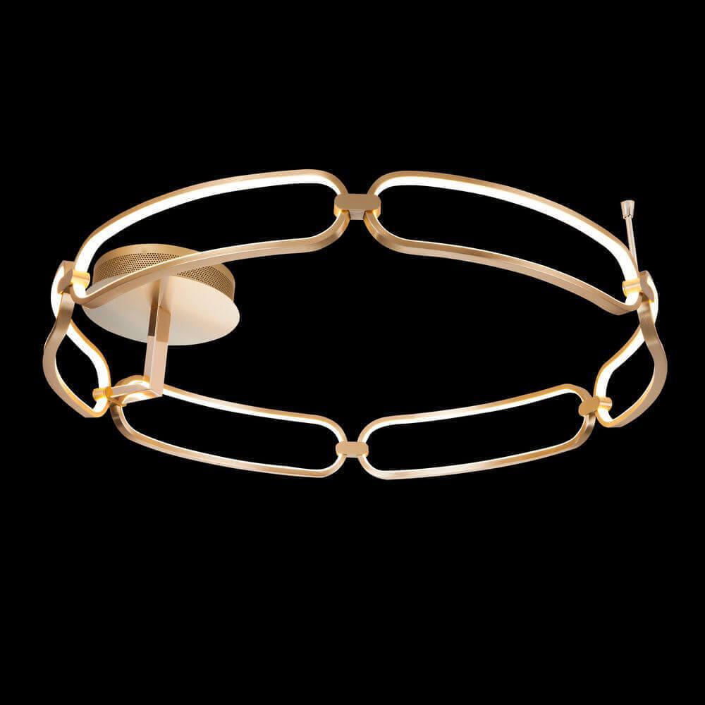 Потолочный светодиодный светильник Maytoni Chain MOD017CL-L70MG от Немецкого бренда Maytoni из коллекции Chain предназначен для установки на потолок в спальни в хай-тек стиле. Cветильник в форме с металлической арматурой залотого цвета и залотого цвета плафонами из металла предназначен для освещения м2.