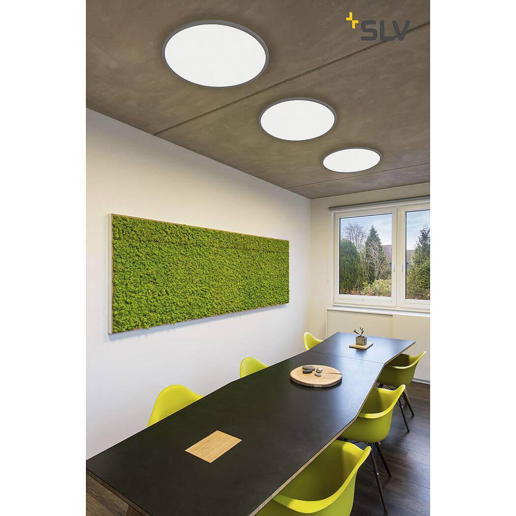 Потолочный светодиодный светильник SLV Panel 1000785 от Немецкого бренда SLV из коллекции Panel предназначен для установки на потолок в офисе в современном стиле. Cветильник в форме круга с алюмииневой арматурой серебрянного цвета и белого цвета плафонами из пластика предназначен для освещения м2.