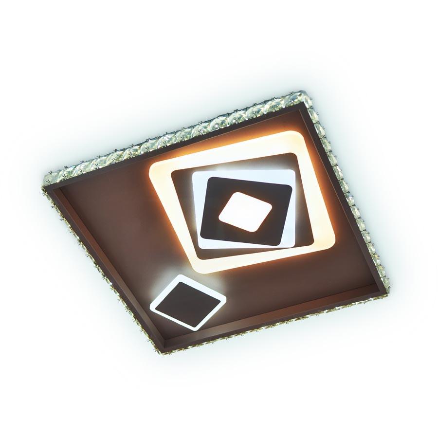 Потолочный светодиодный светильник Ambrella light Acrylica Ice FA250 от Китайского бренда Ambrella light из коллекции Acrylica Ice предназначен для установки на потолок в гостиной в хай-тек стиле. Cветильник в форме квадрата с металлической арматурой кофейного цвета и белого цвета плафонами из акрила предназначен для освещения 18 м2.