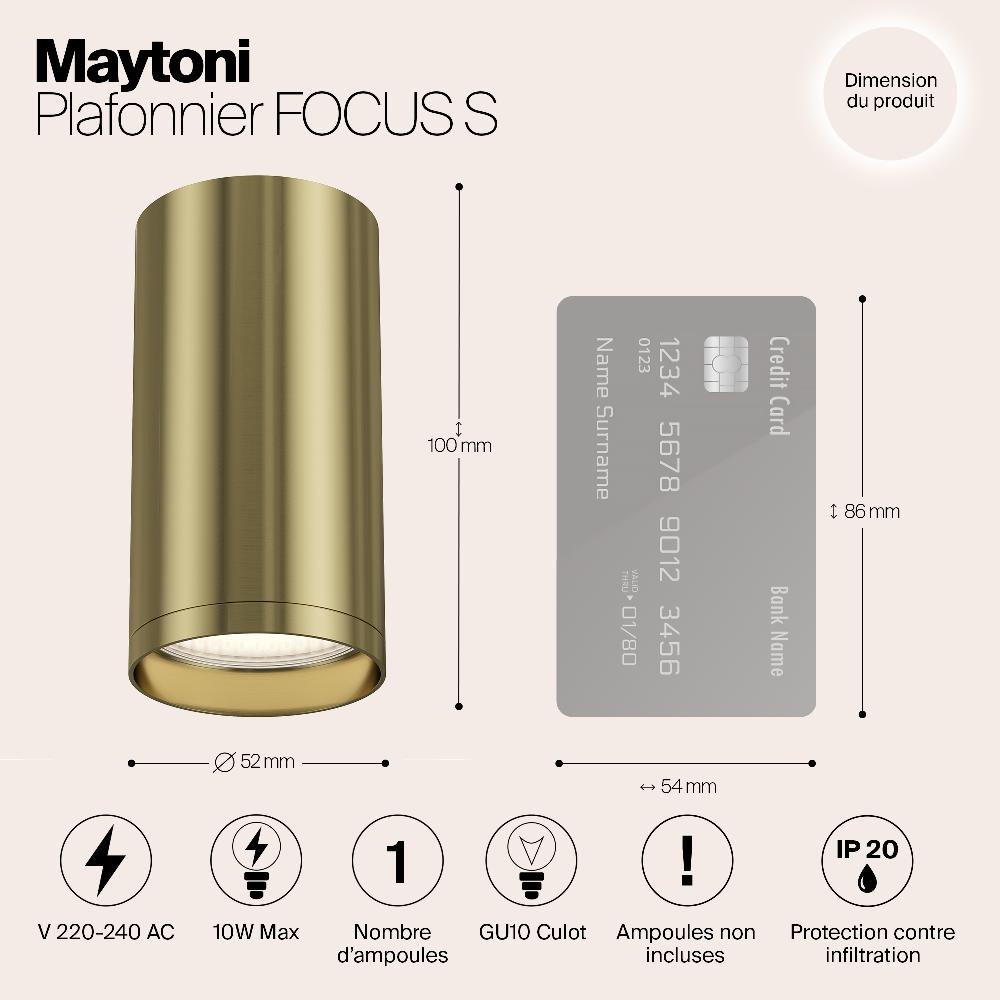 Потолочный светильник Maytoni Focus S C052CL-01BS от бренда Maytoni из коллекции Ceiling предназначен для установки на потолок в прихожей в . Cветильник в форме цилиндра с алюмииневой арматурой цвета латуни и цвета латуни плафонами из алюминия предназначен для освещения м2.