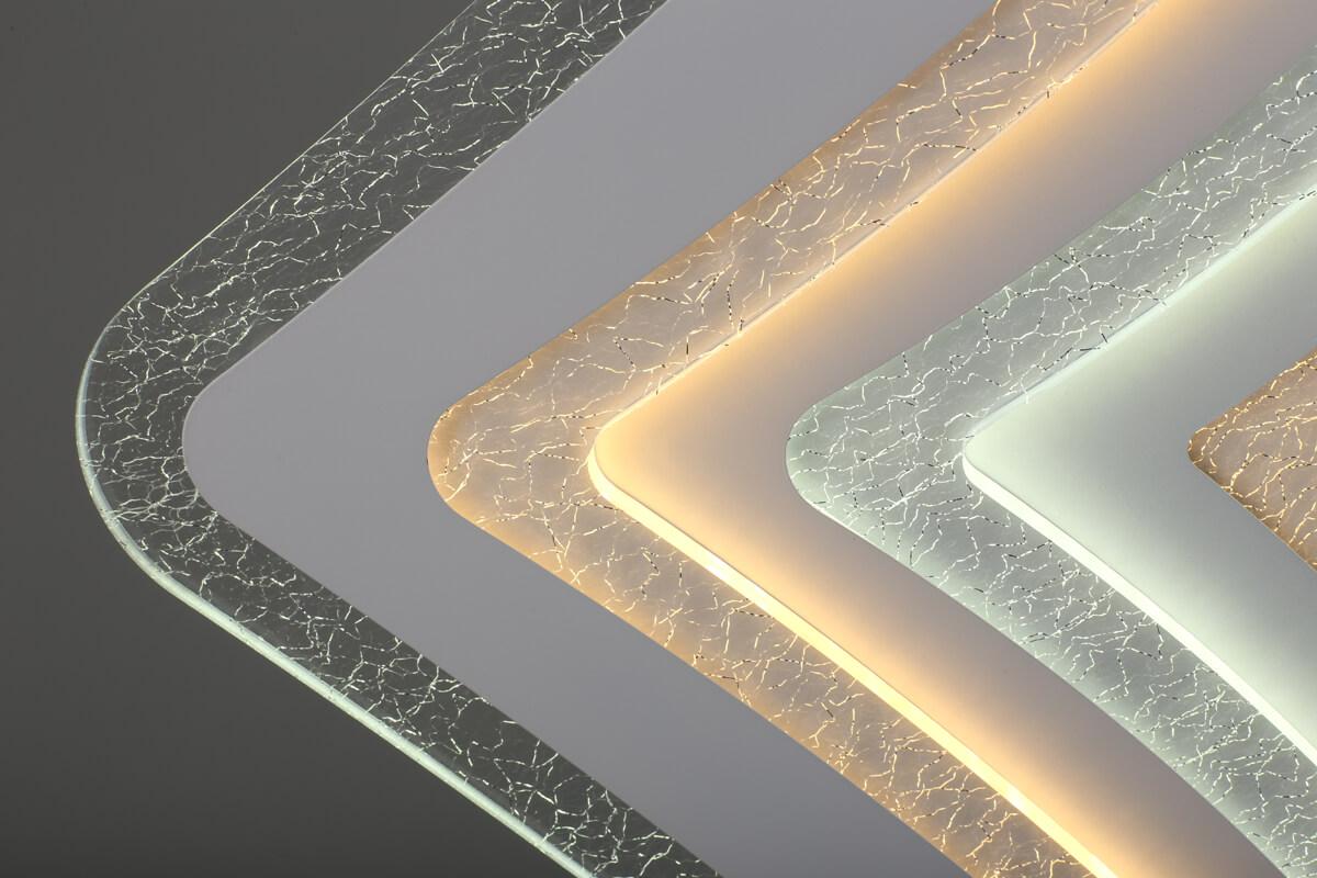 Потолочный светодиодный светильник Omnilux Arzano OML-08437-187 от Китайского бренда Omnilux из коллекции Arzano предназначен для установки на потолок в спальни в хай-тек стиле. Cветильник в форме квадрата с металлической арматурой белого цвета и прозрачного цвета плафонами из акрила предназначен для освещения 19 м2.
