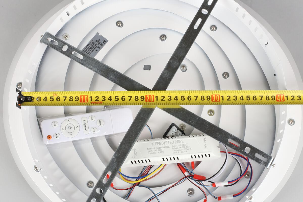 Для светильника необходима 165 W. Габариты изделия: высота – 90 мм, диаметр – 500 мм.