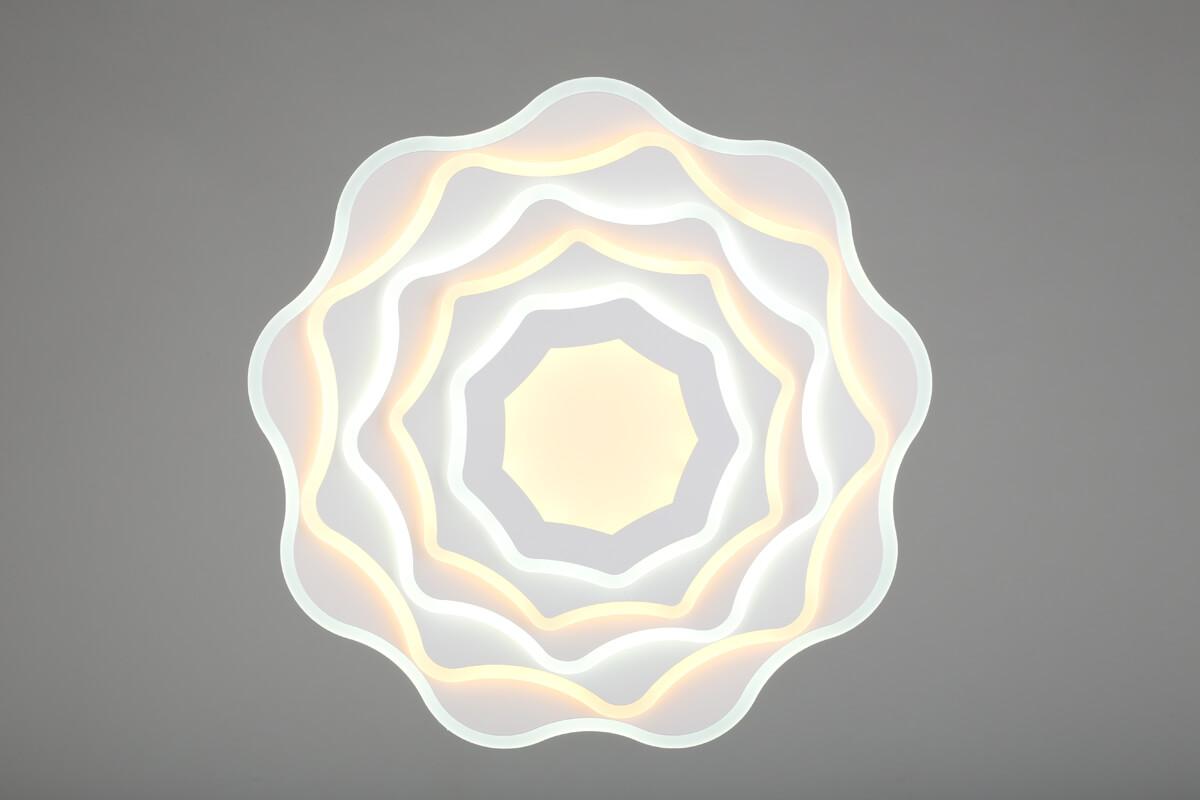 Потолочный светодиодный светильник Omnilux Mottola OML-09607-169 от Китайского бренда Omnilux из коллекции Mottola предназначен для установки на потолок в спальни в современном стиле. Cветильник в форме Флористика с металлической арматурой белого цвета и белого цвета плафонами из акрила предназначен для освещения 17 м2.