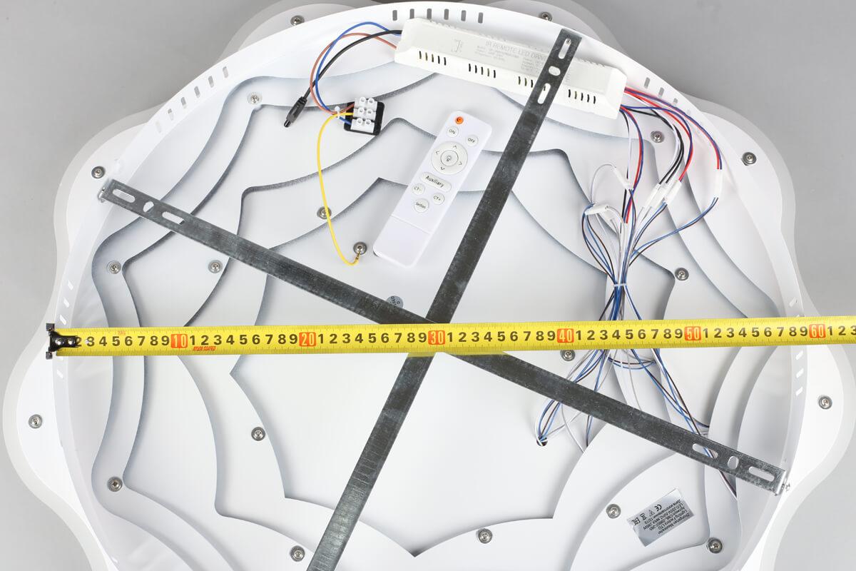 Для светильника необходима 265 W. Габариты изделия: высота – 90 мм, диаметр – 700 мм.