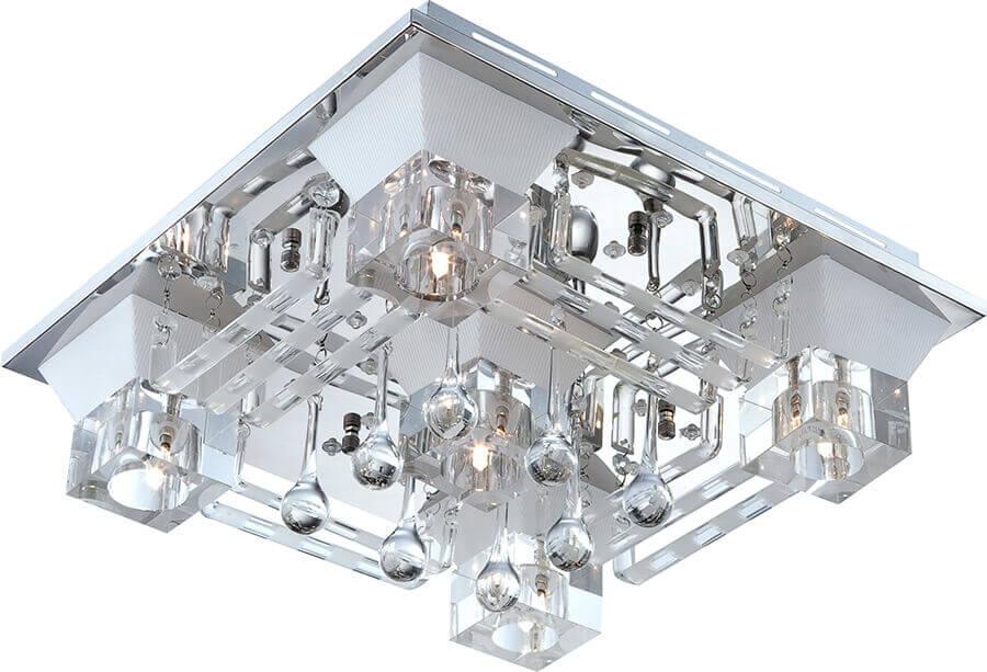 Потолочный светильник Globo Lia 68452-5 от Австрийского бренда Globo из коллекции Lia предназначен для установки на потолок в спальни в современном стиле. Cветильник в форме квадрата с металлической арматурой цвет хрома и прозрачного цвета плафонами из стекла предназначен для освещения 5,6 м2.