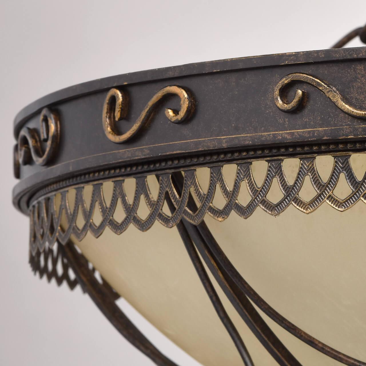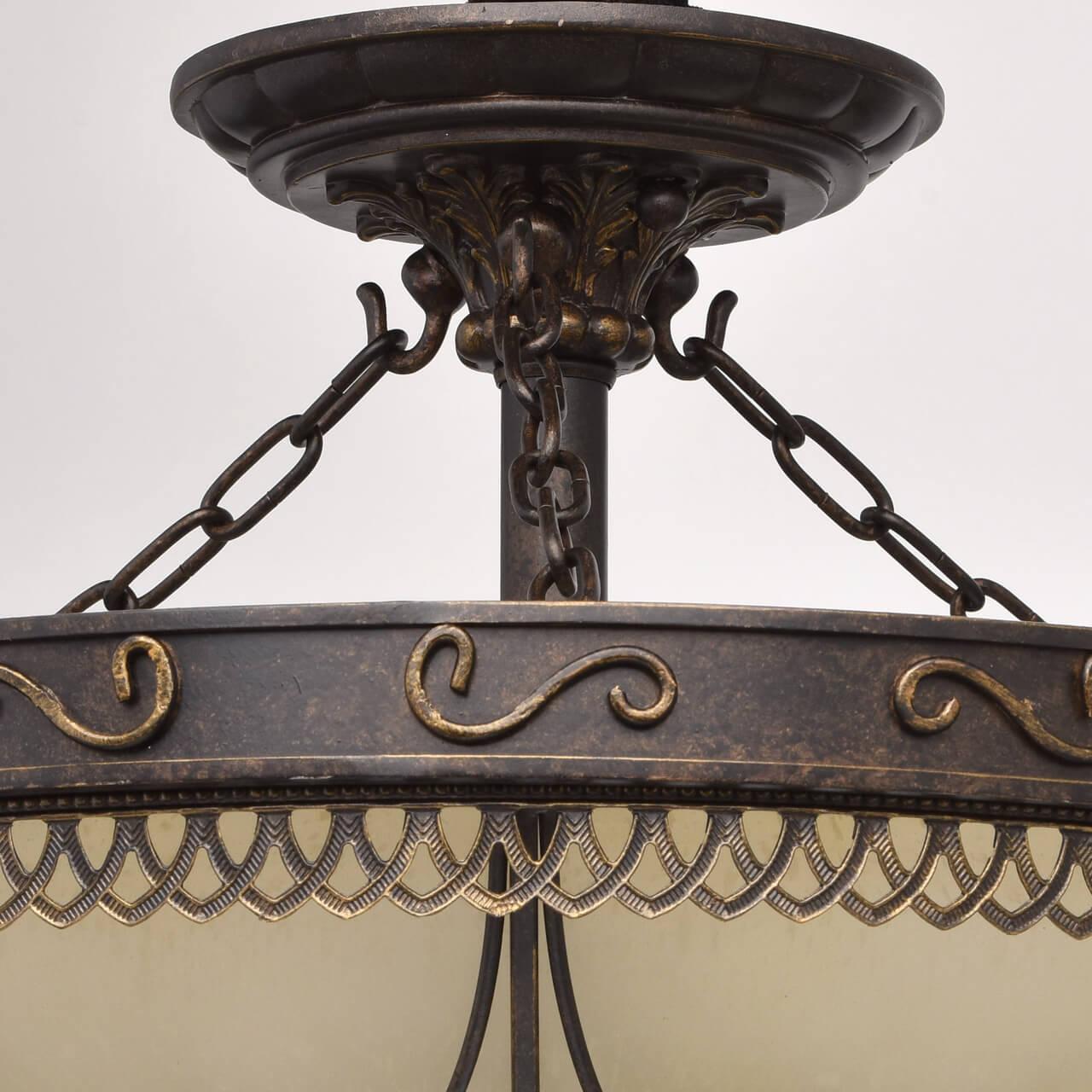 Потолочный светильник Chiaro Айвенго 382018205 от Немецкого бренда Chiaro из коллекции Айвенго предназначен для установки на потолок в спальни в стиле модерн. Cветильник в форме полукруга с металлической арматурой коричневого цвета и белого цвета плафонами из стекла предназначен для освещения 16,7 м2.