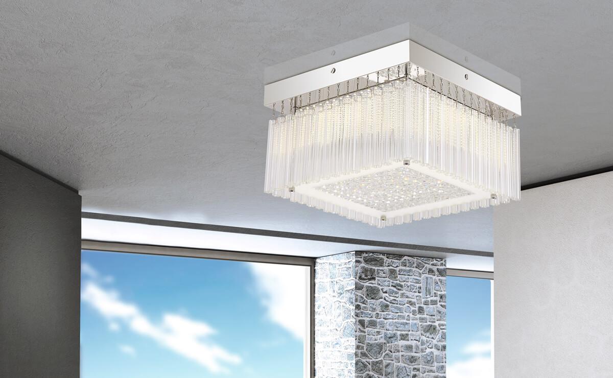 Потолочный светодиодный светильник Globo Heidir 49348 от Австрийского бренда Globo из коллекции Heidir предназначен для установки на потолок в гостиной в современном стиле. Cветильник в форме квадрата с металлической арматурой цвет хрома и прозрачного цвета плафонами из стекла предназначен для освещения м2.