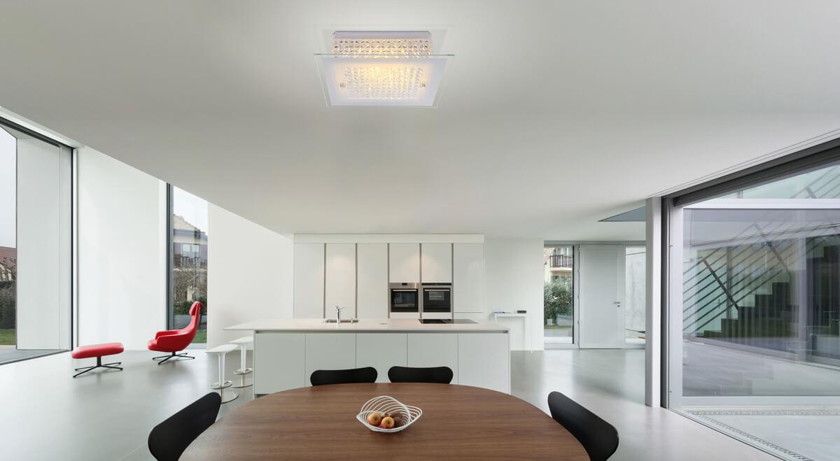 Потолочный светодиодный светильник Globo Heidir 49349 от Австрийского бренда Globo из коллекции Heidir предназначен для установки на потолок в прихожей в современном стиле. Cветильник в форме квадрата с металлической арматурой белого цвета и прозрачного цвета плафонами из стекла предназначен для освещения м2.