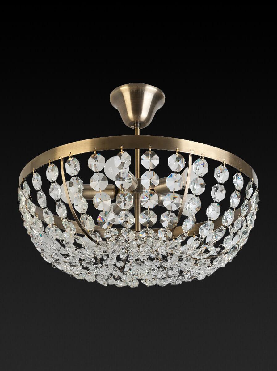 Для светильника необходима 5 ламп накаливания 60 W. Габариты изделия: высота – 340 мм, диаметр – 450 мм.