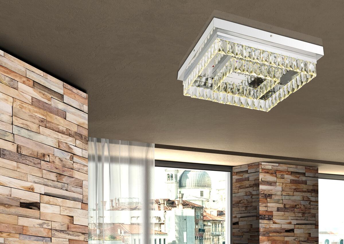 Потолочный светодиодный светильник Globo Jason 49234-40 от Австрийского бренда Globo из коллекции Jason предназначен для установки на потолок в гостиной в современном стиле. Cветильник в форме квадрата с металлической арматурой цвет хрома и прозрачного цвета плафонами из хрусталя предназначен для освещения м2.