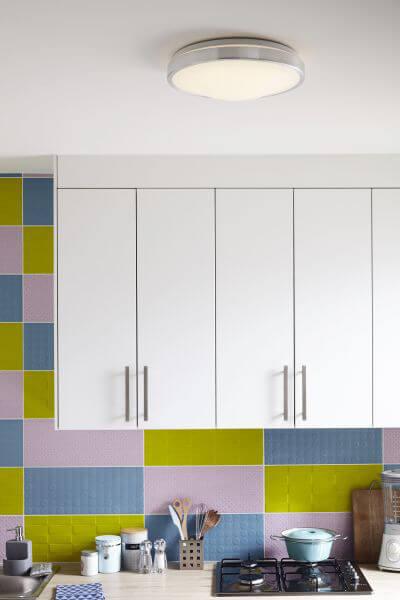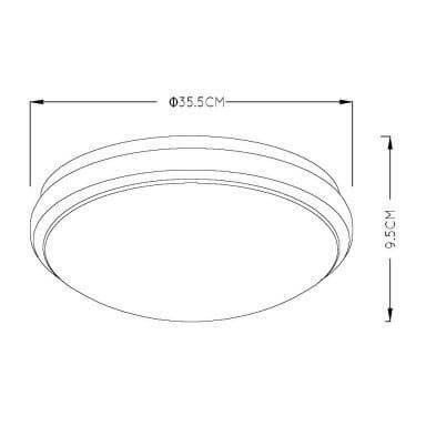 Для светильника необходима светодиодных ламп 18 W. Габариты изделия: высота – 95 мм, диаметр – 355 мм.