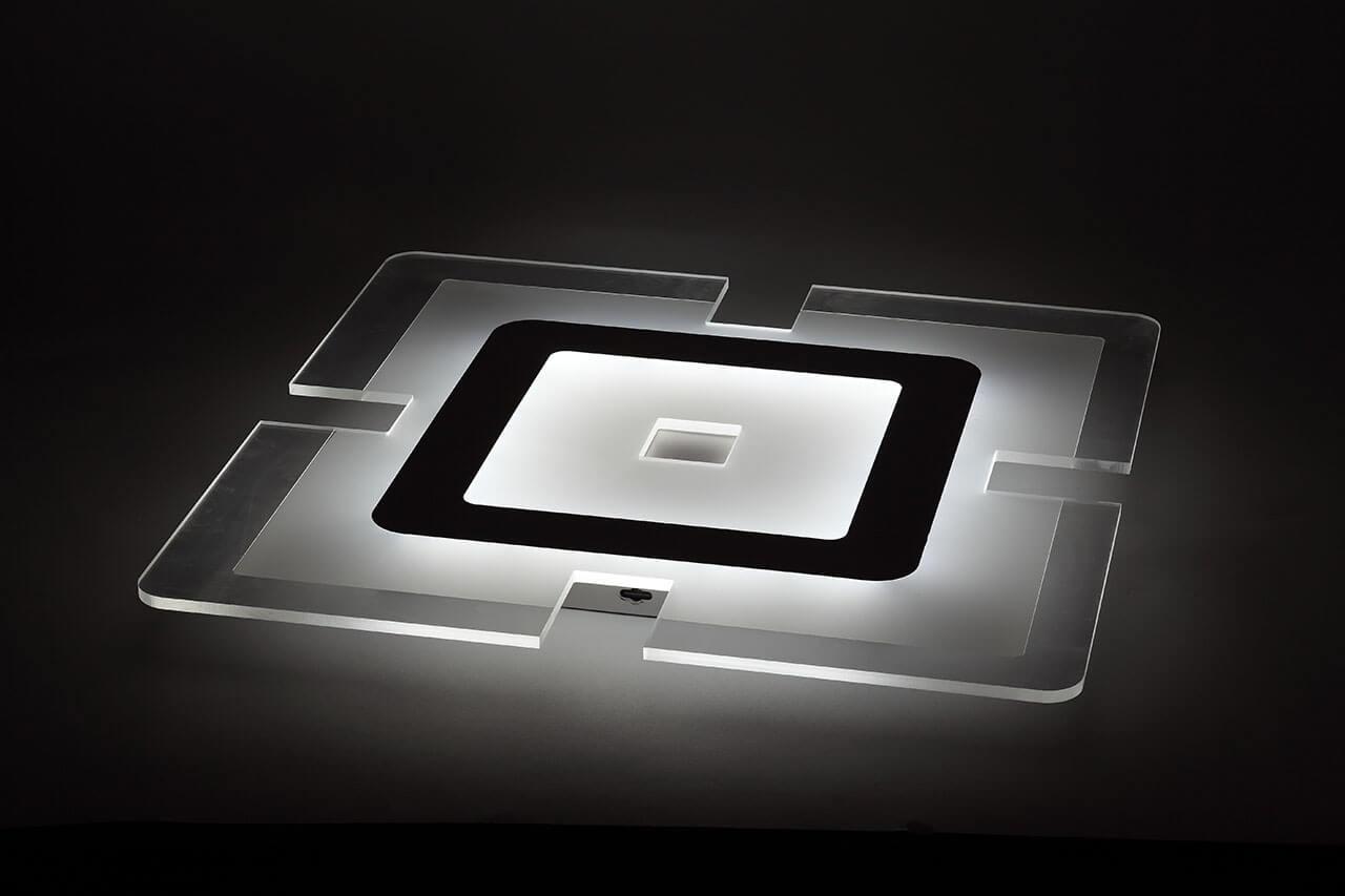 Для светильника необходима светодиодных ламп 55 W. Габариты изделия: высота – 80 мм, диаметр – 550 мм.