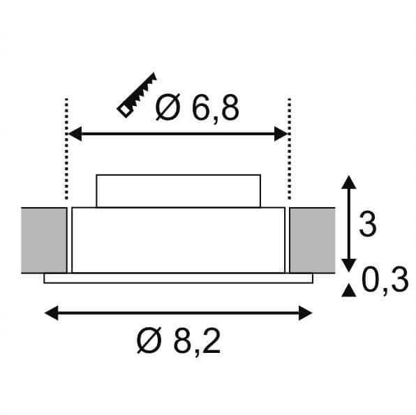 Для светильника необходима светодиодных ламп 5,2 W. Габариты изделия: высота – 3 мм, диаметр – 82 мм.