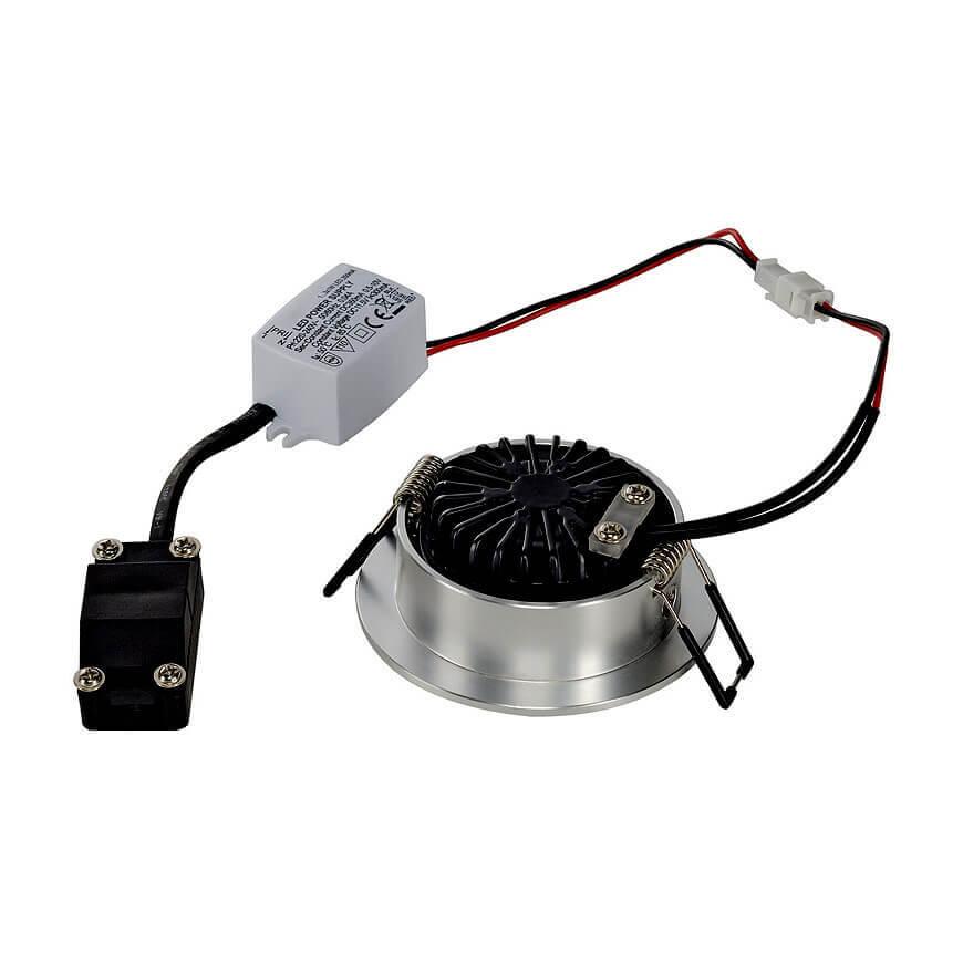 Встраиваемый светодиодный светильник SLV New Tria Led DL Round Set 113956 от Немецкого бренда SLV из коллекции New Tria Led Round предназначен для установки врезания в кафе и ресторанах в современном стиле. Cветильник в форме круга с алюмииневой арматурой серебрянного цвета и серебрянного цвета плафонами из металла предназначен для освещения 2,6 м2.