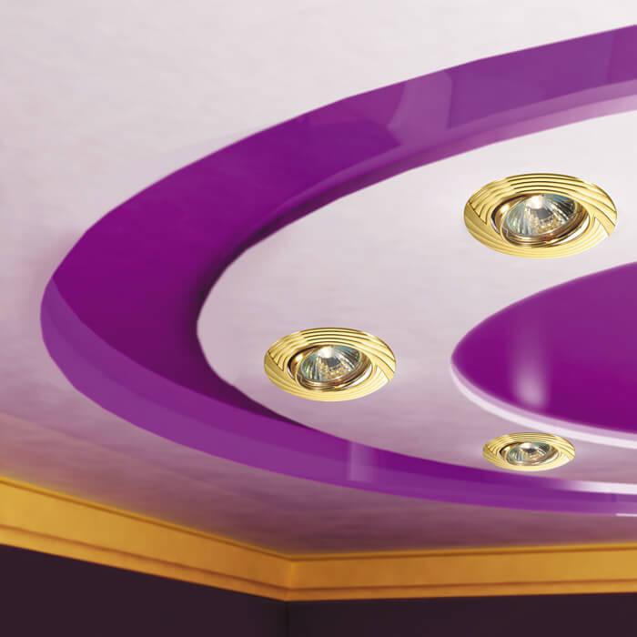 Встраиваемый светильник Novotech Trek 369613 от Венгерского бренда Novotech из коллекции Spot предназначен для установки на потолок в кухне в стиле модерн. Cветильник в форме круга с металлической арматурой залотого цвета и залотого цвета плафонами из металла предназначен для освещения 2,8 м2.