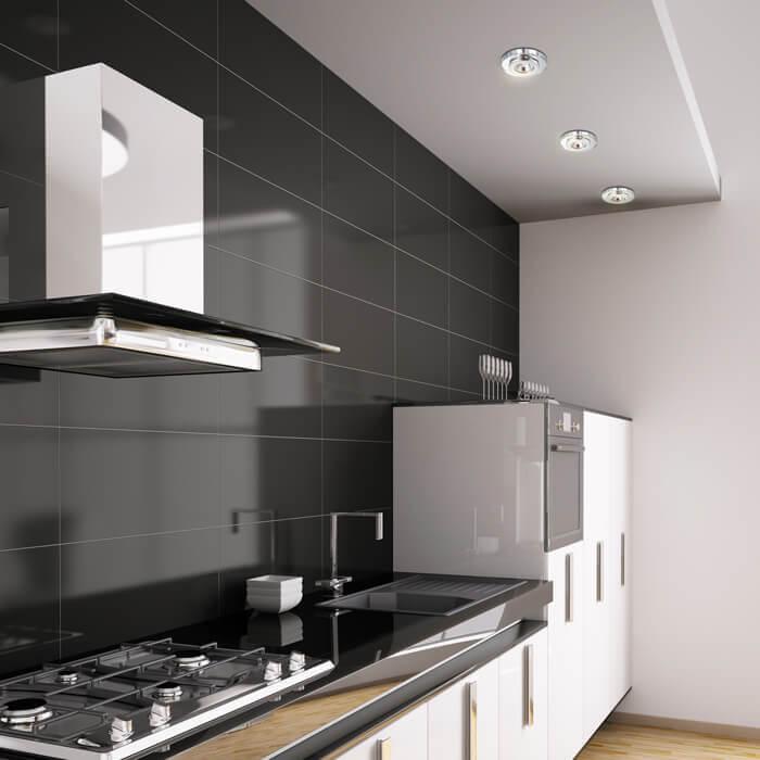 Для светильника необходима 1 галогеновая лампа 50 W. Габариты изделия: высота – 30 мм, диаметр – 110 мм.