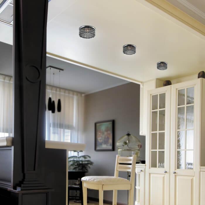 Встраиваемый светильник Novotech Pearl Round 369445 от Венгерского бренда Novotech из коллекции Spot предназначен для установки на потолок в кафе и ресторанах в стиле Арт-деко. Cветильник в форме цилиндра с металлической арматурой цвет хрома и черного цвета плафонами из хрусталя предназначен для освещения 2,8 м2.