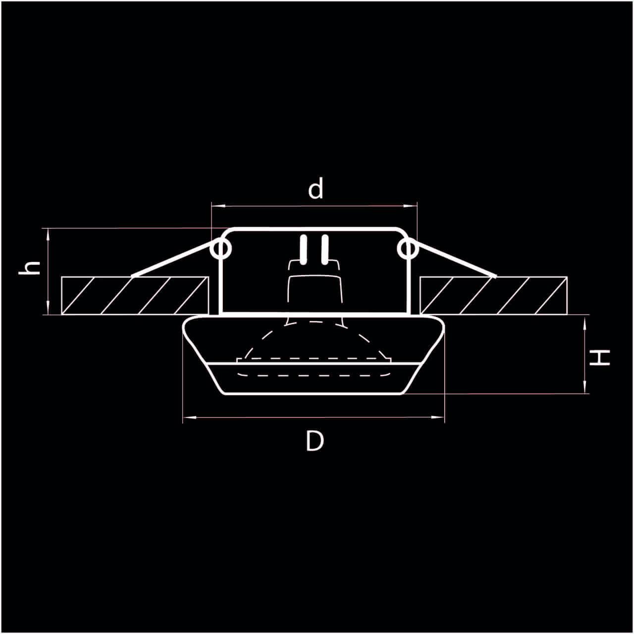 Для светильника необходима 1 светодиодная лампа 50 W. Габариты изделия: высота – 30 мм, диаметр – 115 мм.