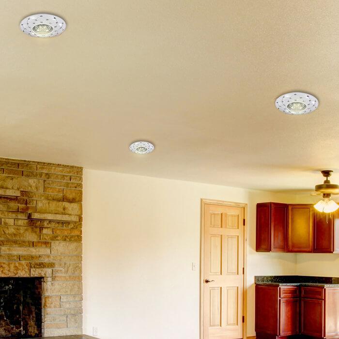 Для светильника необходима 1 галогеновая лампа 50 W. Габариты изделия: высота – 8 мм, диаметр – 115 мм.