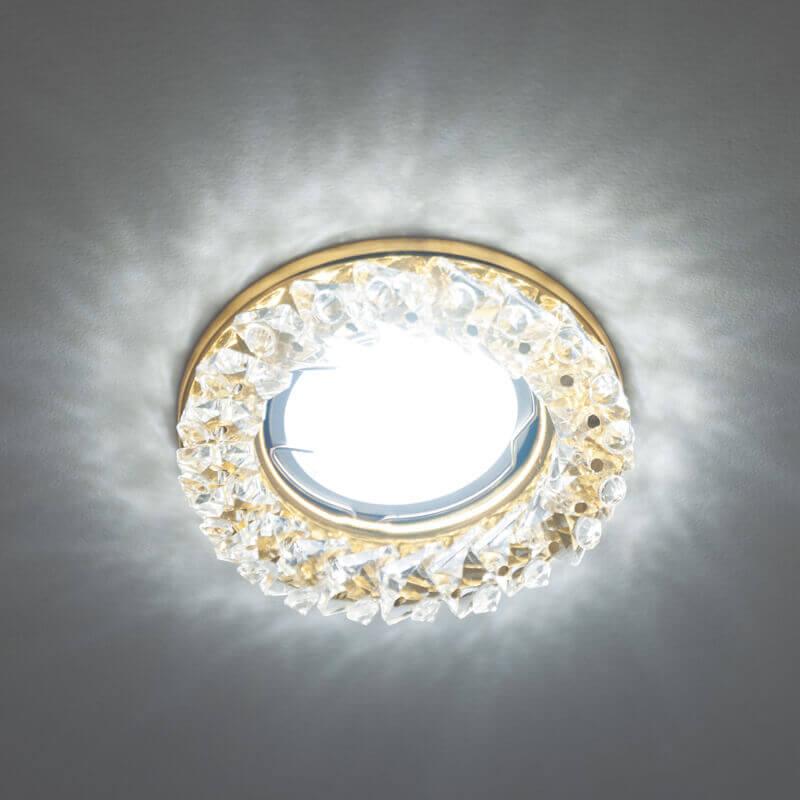 Встраиваемый светильник Fametto Peonia DLS-P121-2001 от Китайского бренда Fametto из коллекции Peonia предназначен для установки на потолок в гостиной в современном стиле. Cветильник в форме круга с металлической арматурой залотого цвета и прозрачного цвета плафонами из стекла предназначен для освещения 2,8 м2.