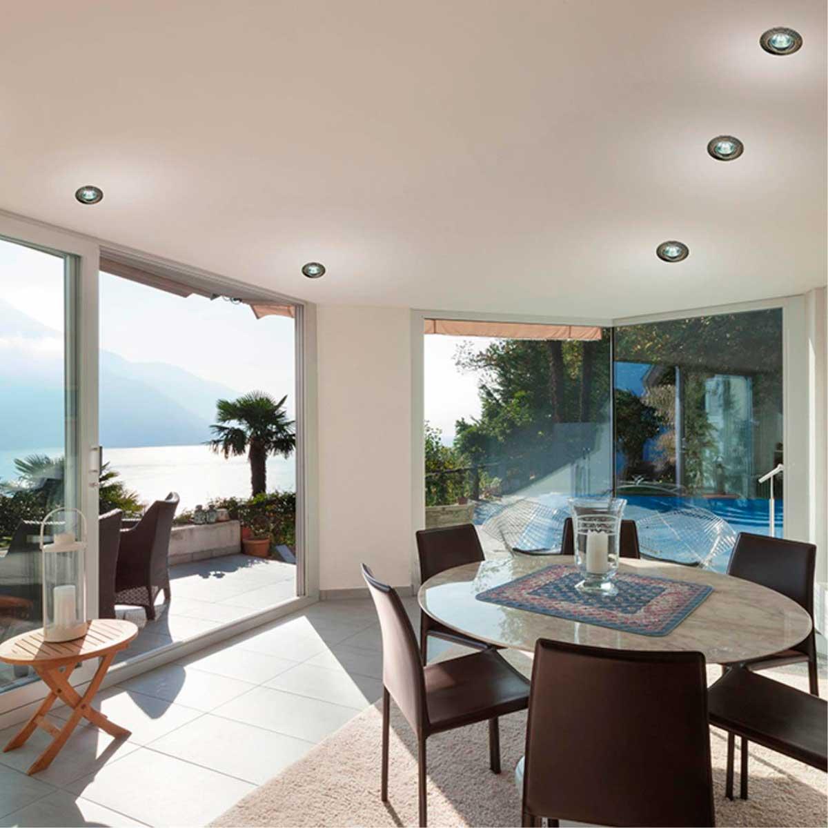 Для светильника необходима 1 галогеновая лампа 50 W. Габариты изделия: высота – 2 мм, диаметр – 93 мм.