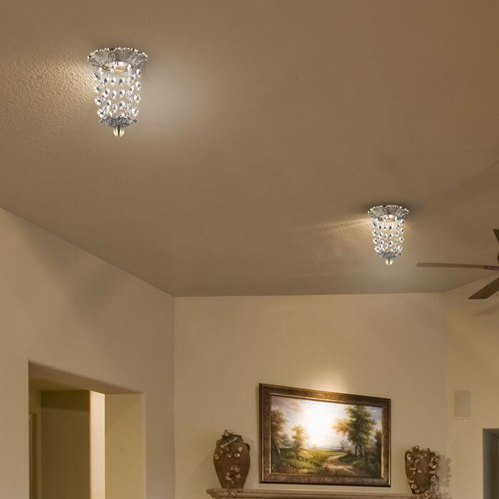 Для светильника необходима 1 галогеновая лампа 50 W. Габариты изделия: высота – 128 мм, диаметр – 100 мм.